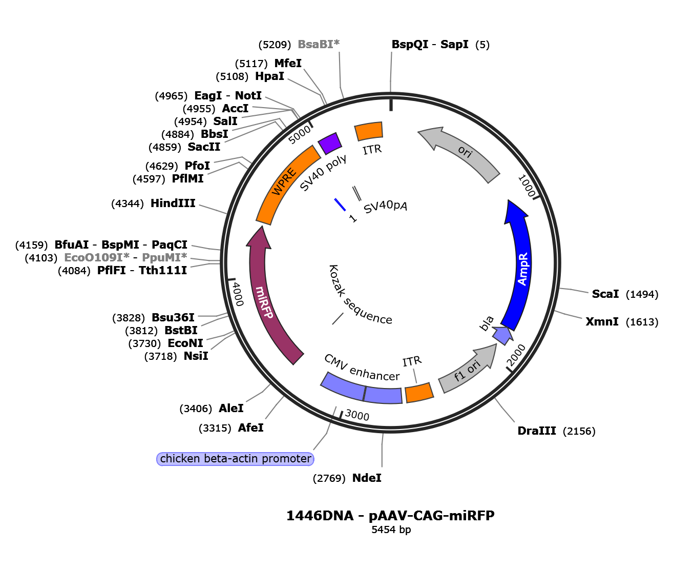 AAV-CAG-miRFP - AAV2/1 is backordered and will ship as soon as it is back in stock.